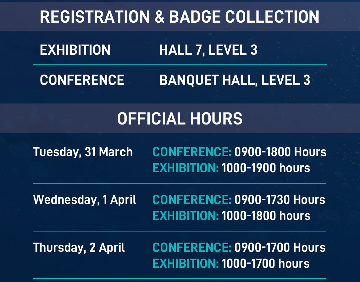 Take note of badge collection timings and official opening hours to make the most of your OTC Asia 2026 experience.